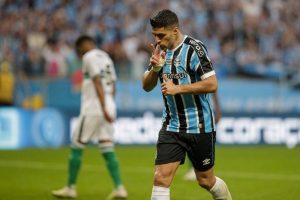 Luis Suárez pede substituição e recebe tratamento no joelho confira mais detalhes da vitória de 5×1 do Grêmio.